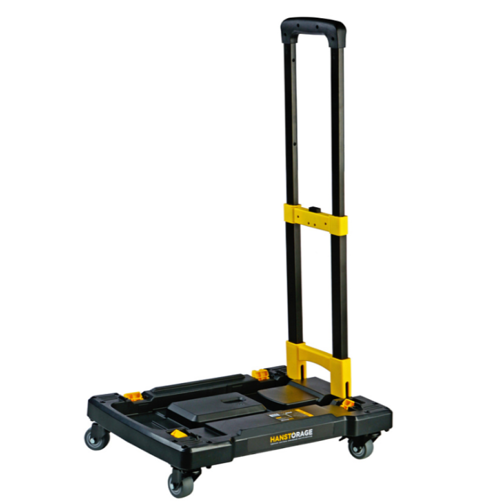 Платформа транспортировочная единой системы хранения Hanstorage представляет собой устройство для размещения кейсов системы хранения и их перемещения (транспортировки). Данная платформа снабжена складной телескопической рукояткой общей высотой 775мм для удобства пользователя. Допусимая нагрузка на платформу -100кг