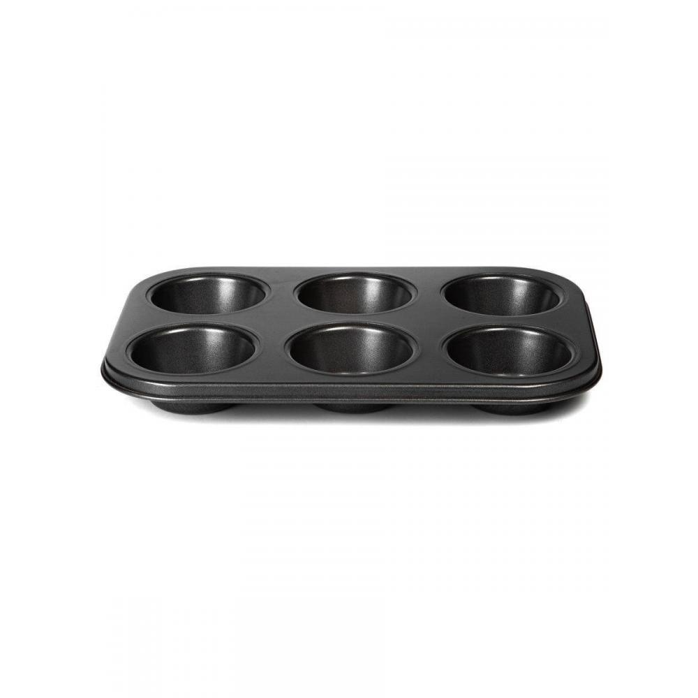 Антипригарная прямоугольная форма для выпечки 6 кексов из углеродистой стали. Размеры: 26,3х18,5х3см. Прочное антипригарное покрытие позволяет быстро отделить выпечку от боковых стенок и дна, легко моется.