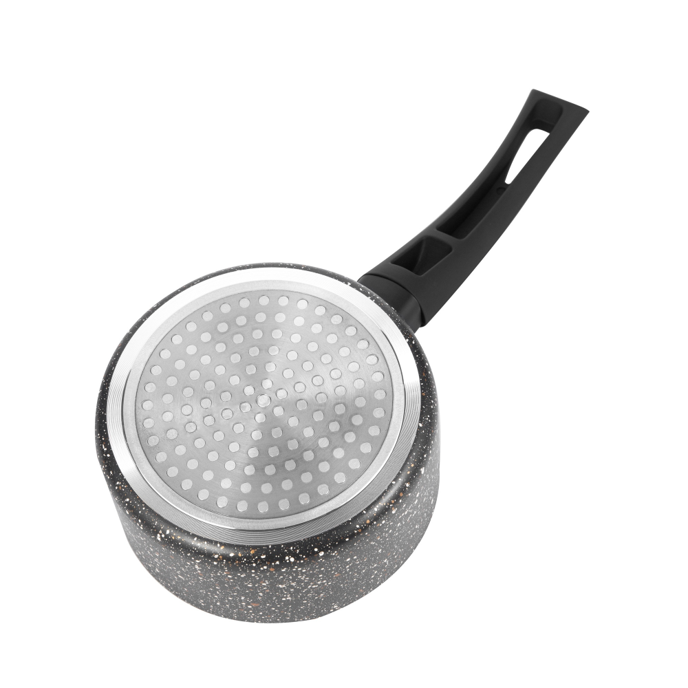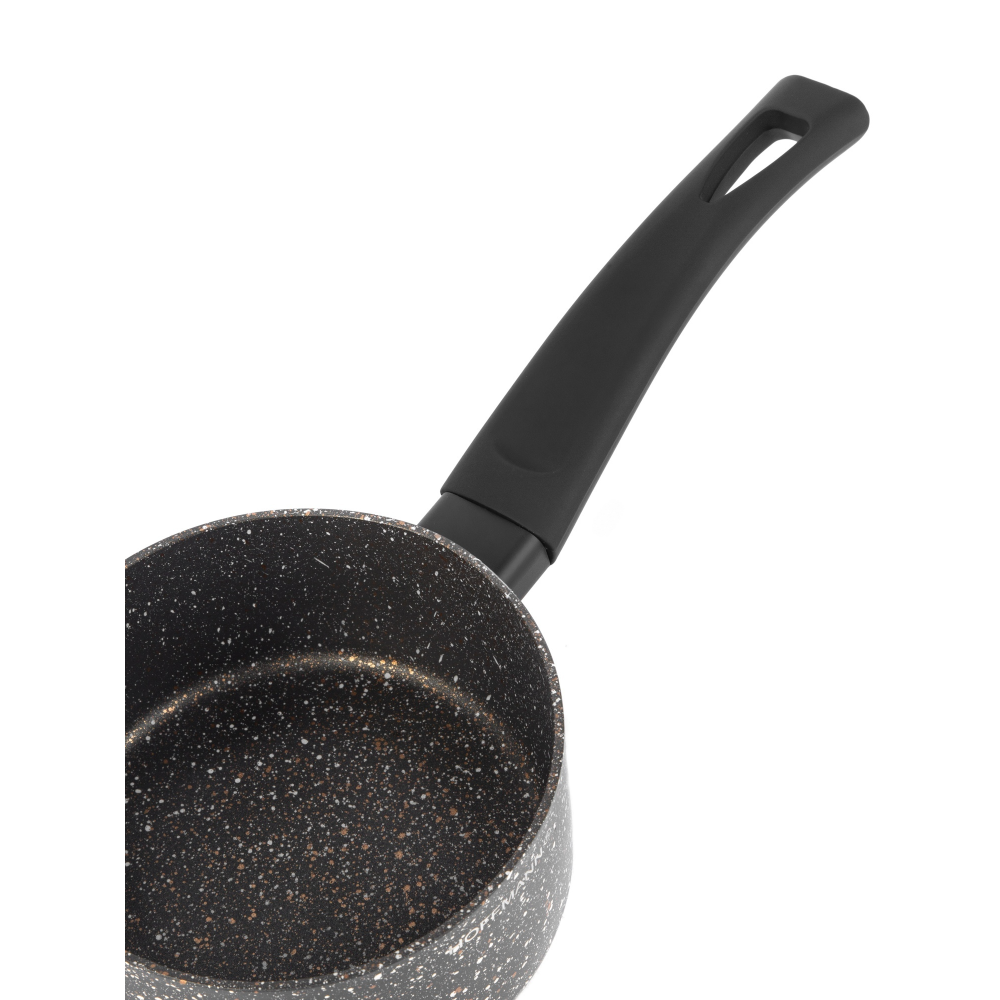 Ковш из алюминия с антипригарным мраморным покрытием. (12 см.), объем 0,5 литра быстро нагревается, легко чистить, черный, можно мыть в посудомоечной машине
