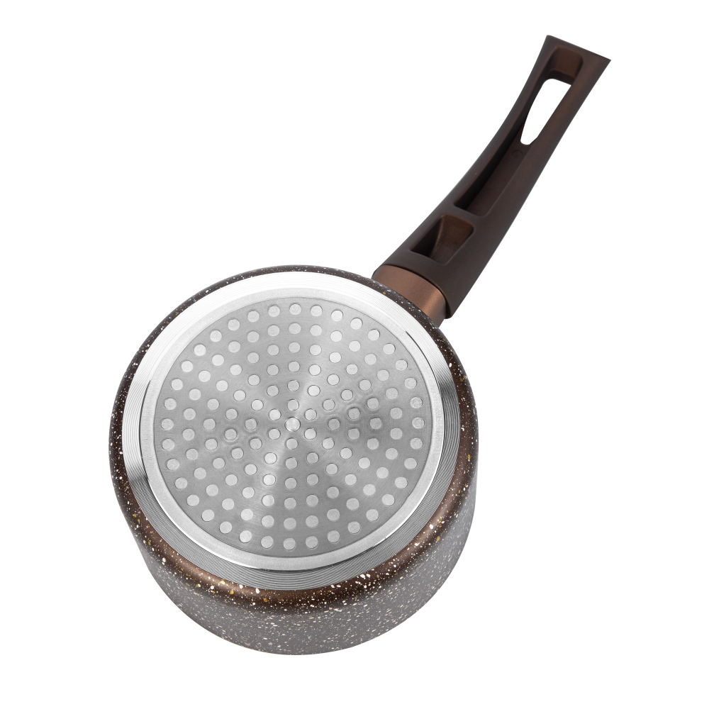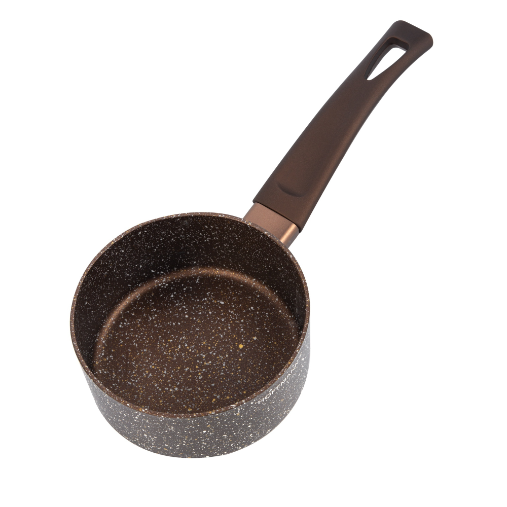 Ковш из алюминия с антипригарным мраморным покрытием. (12 см.), объем 0,5 литра быстро нагревается, легко чистить, коричневый, можно мыть в посудомоечной машине