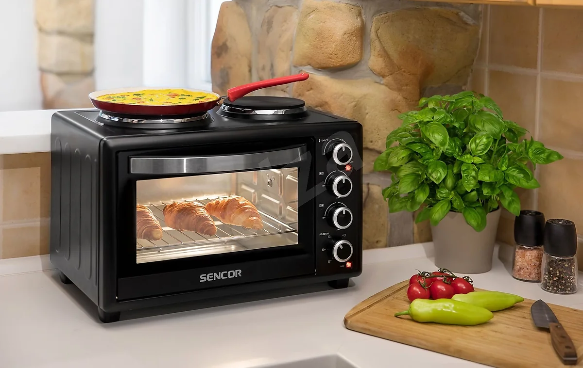 Мини печь представляет собой гибрид духовки, хлебопечки, тостера, микроволновки, а часто и небольшой варочной панели на несколько конфорок. В этом приборе гармонично сочетаются несколько функций при достаточно небольших размерах. Его можно поставить на кухонный стол или тумбу и подключить в обычную розетку — это главные достоинства, за которые ценятся эти компактные духовки уже долгое время. Что может мини печь? Если приобрести оптимальную для ваших потребностей модель, то она сможет:
