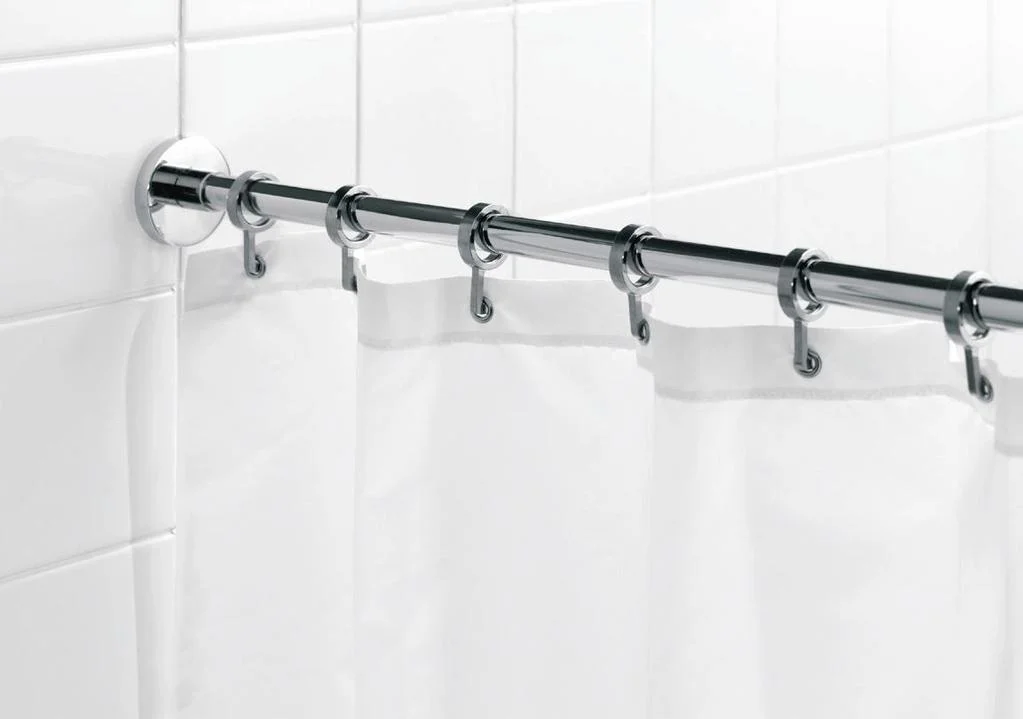 Г-образные держатели изготавливают из высокопрочных материалов, чтобы они могли выдержать вес занавесей и влажного белья массой до 10 кг.