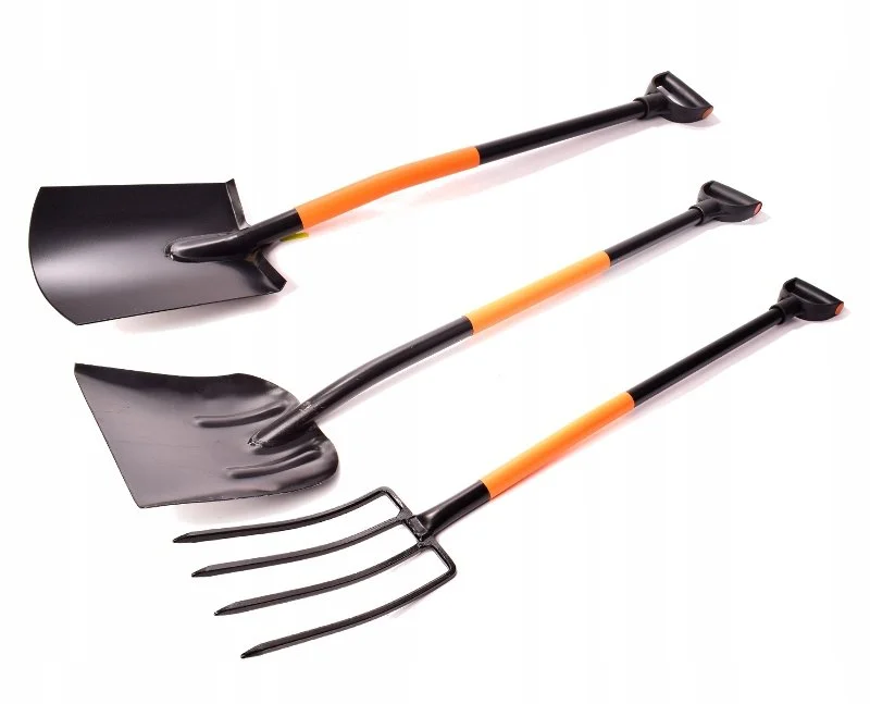 Пластик – дешевый и легкий материал, не боящийся коррозии. Недостаток – хрупкость. Чаще всего используется в снегоуборочных лопатах, скреперах, плодосъемниках, отдельных моделях граблей, мотыг, вилок.