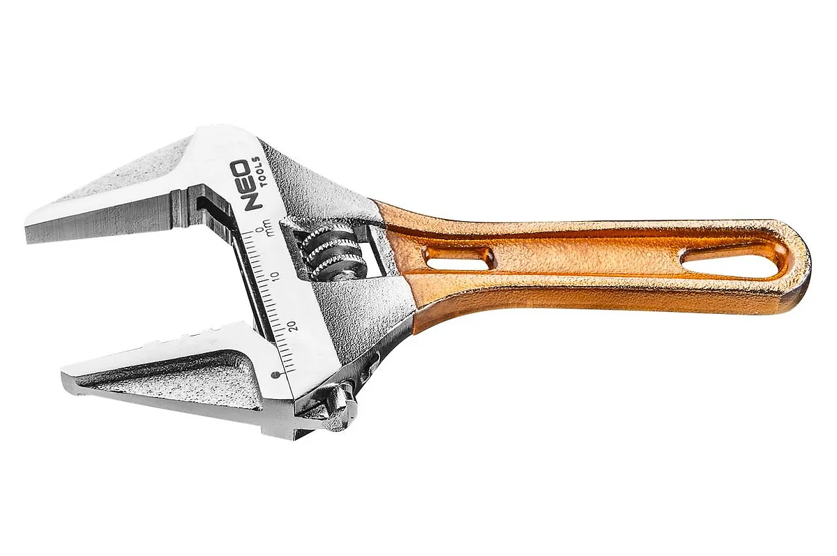 Подходит для работы с гайками большого диаметра, позволяет сэкономить много времени за счет быстрой подгонки размера зева.