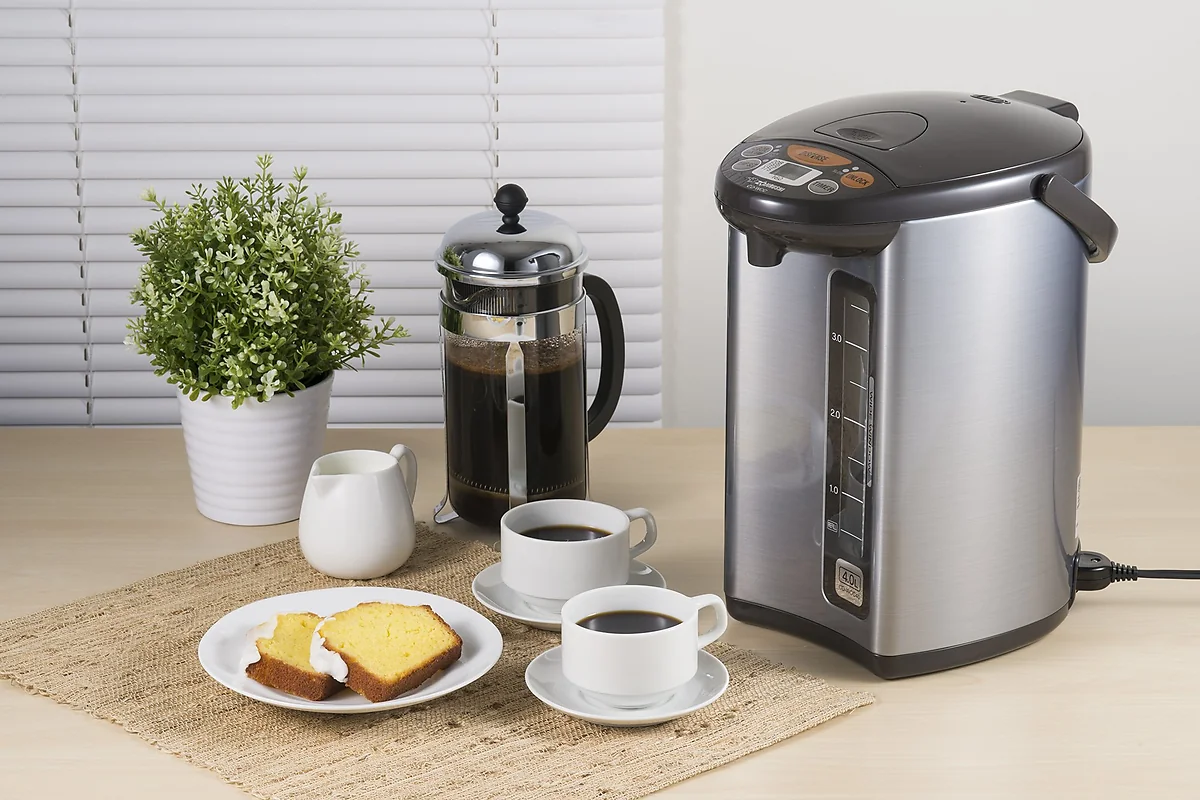 Термопот — это нечто среднее между электрочайником, термосом и самоваром. С чайником его роднит основная функция — кипячение воды, с термосом — способность сохранять воду горячей, с самоваром — способ разлива воды без подъема резервуара. Более двадцати лет назад это чудо техники придумали в Японии, но невозможно найти более подходящего российским культурно-бытовым реалиям устройства приготовления горячих напитков.
