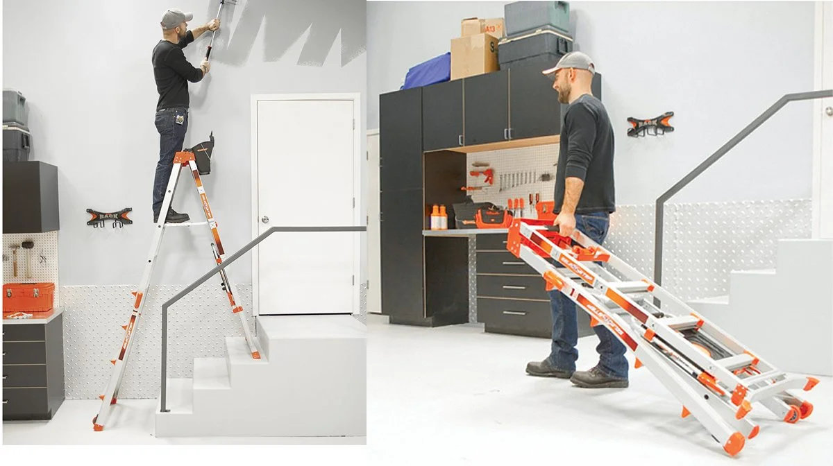 Лестница, которая имеет три секции, – это, по сути, улучшенная модель стремянки, в которую добавлено еще одно звено. С помощью этого элемента можно трансформировать конструкцию в зависимости от рода работ, которые необходимо делать. Многие домовладельцы предпочитают иметь дело именно с такими подъемными устройствами: они компактны, их легко перемещать и хранить.