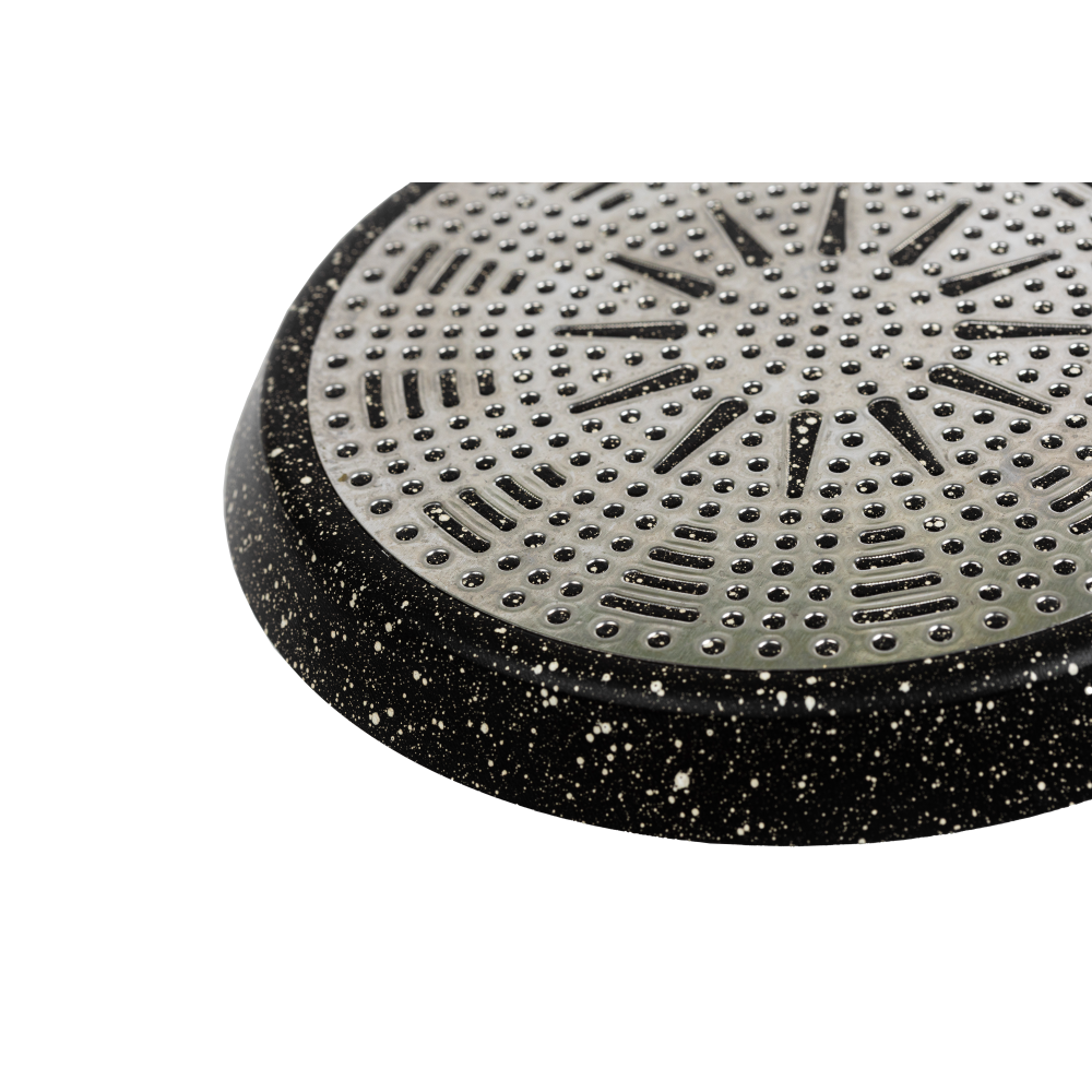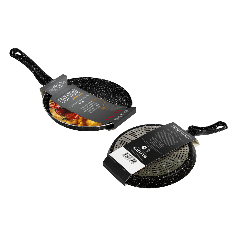 Удобная и практичная сковорода для блинов линейки Easy Stone Induction бренда Kalitva предназначены для жарки аппетитных румяных блинчиков. Диаметр 22 см. Качественное антипригарное покрытие внутри и декоративное покрытие снаружи черного цвета с эффектом камня, прочный корпус из штампованного пищевого алюминия, экологичность, безопасность и удобство использования – в этой модели блинницы продуманы все детали, чтобы ее использованием было долгим и комфортным. А встроенный в корпус диск из нержавеющей стали позволяет использовать блинницу также и на индукионной плите.