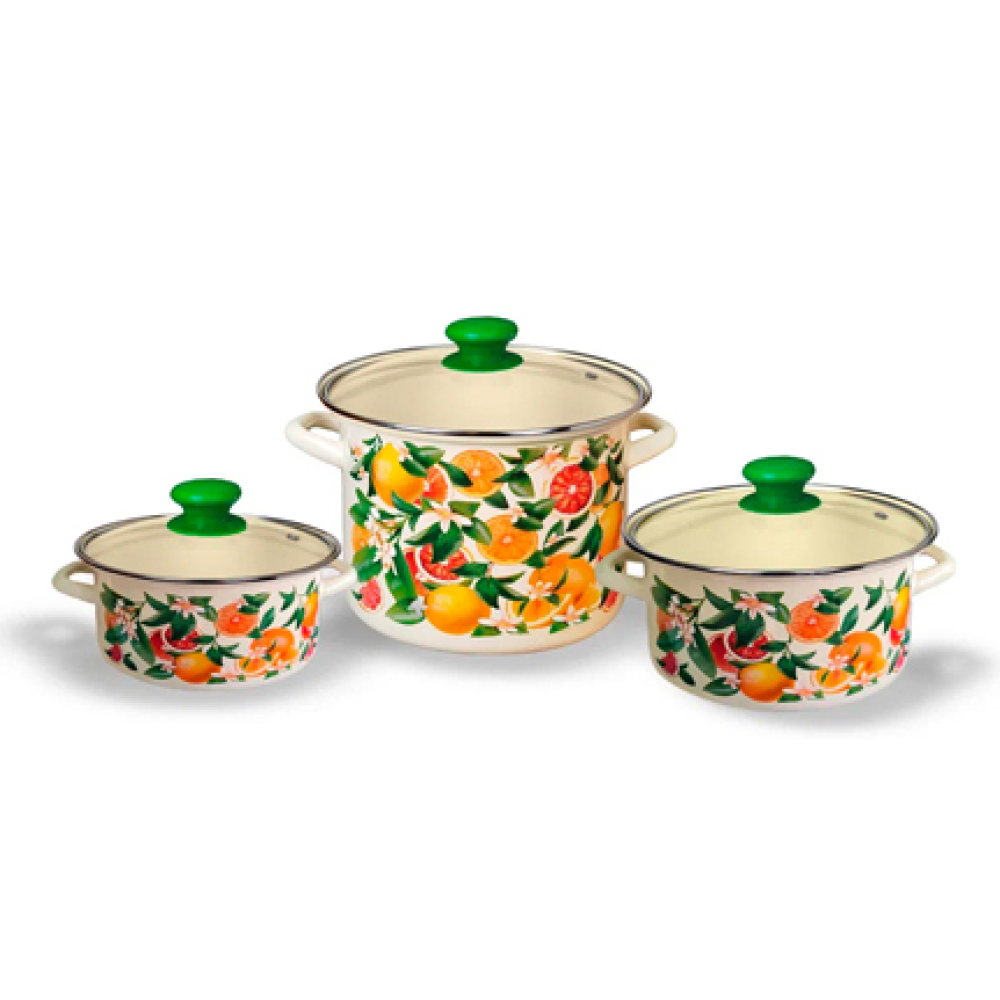 Состав набора: кастрюля 2,5 л, кастрюля 3,7 л, кастрюля 5,0 л.