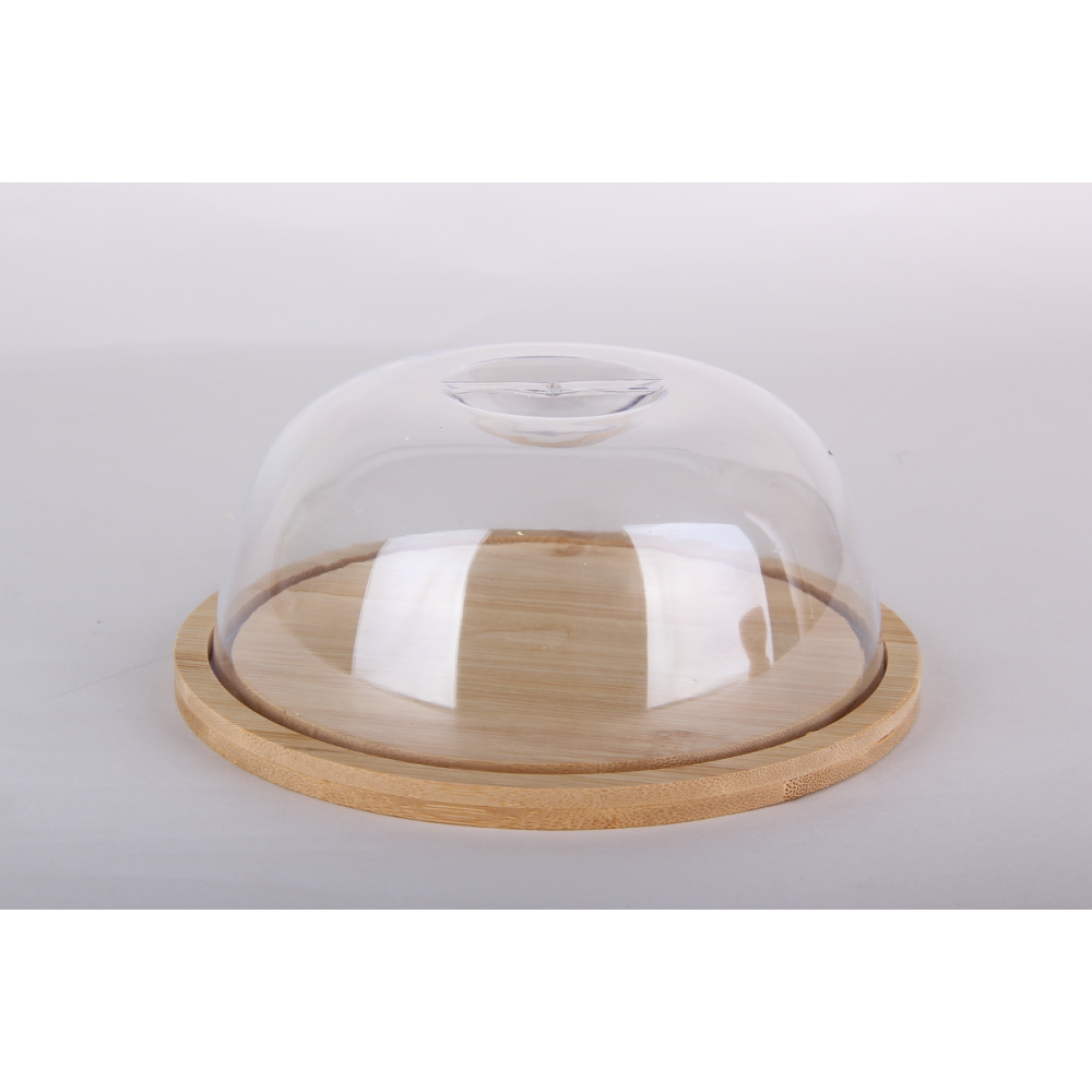 Сервировочное блюдо выполнено из бамбука. Изделие дополнено удобной прозрачной крышкой из пластика.
