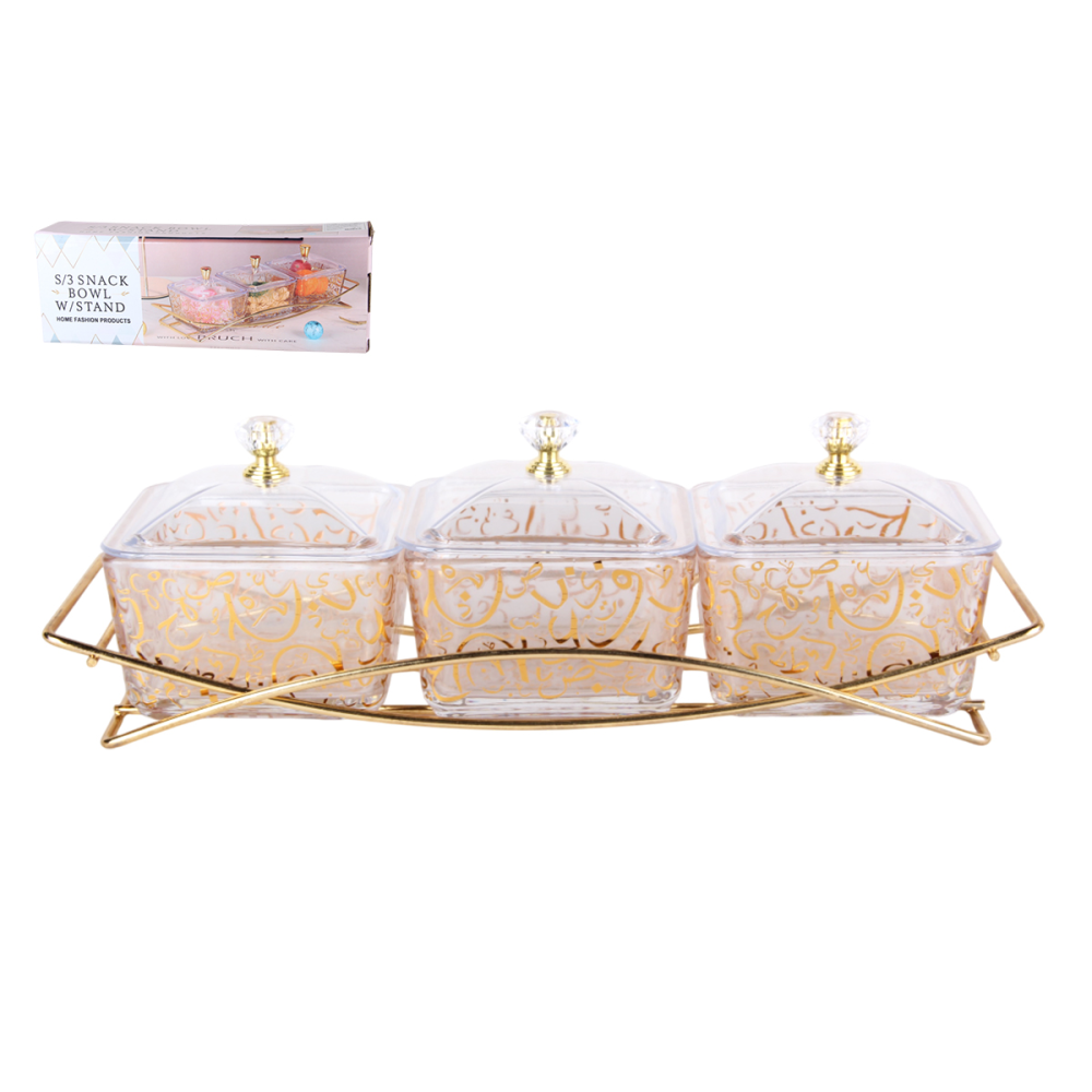 Менажница 3-х секционная на метал.подставке 27.5х9.5х8.5см 9188
