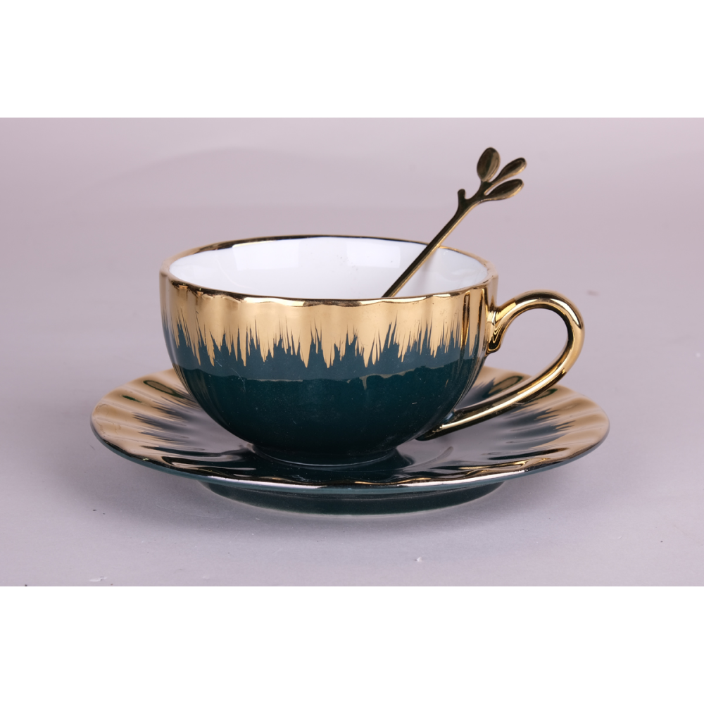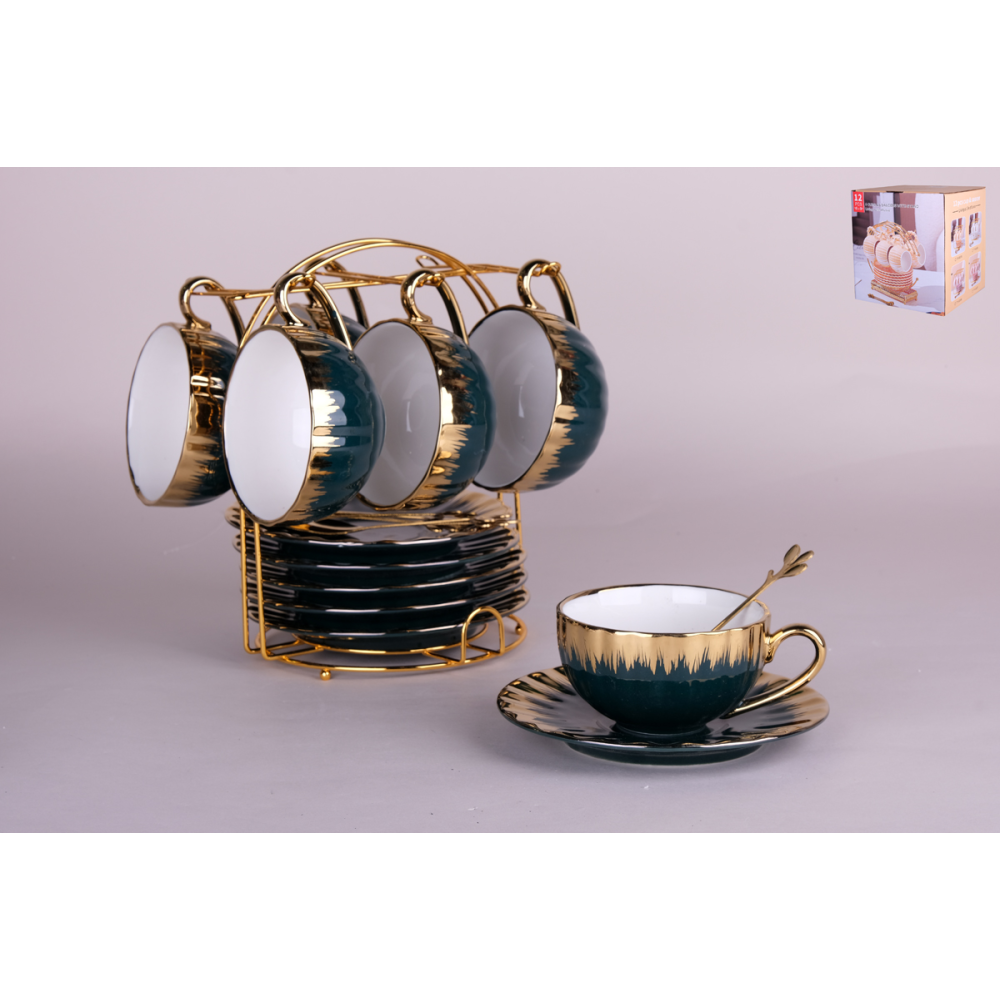 Набор чайный 12 пр. Black gold КОРАЛЛ 220 мл. на мет.подст. 7478