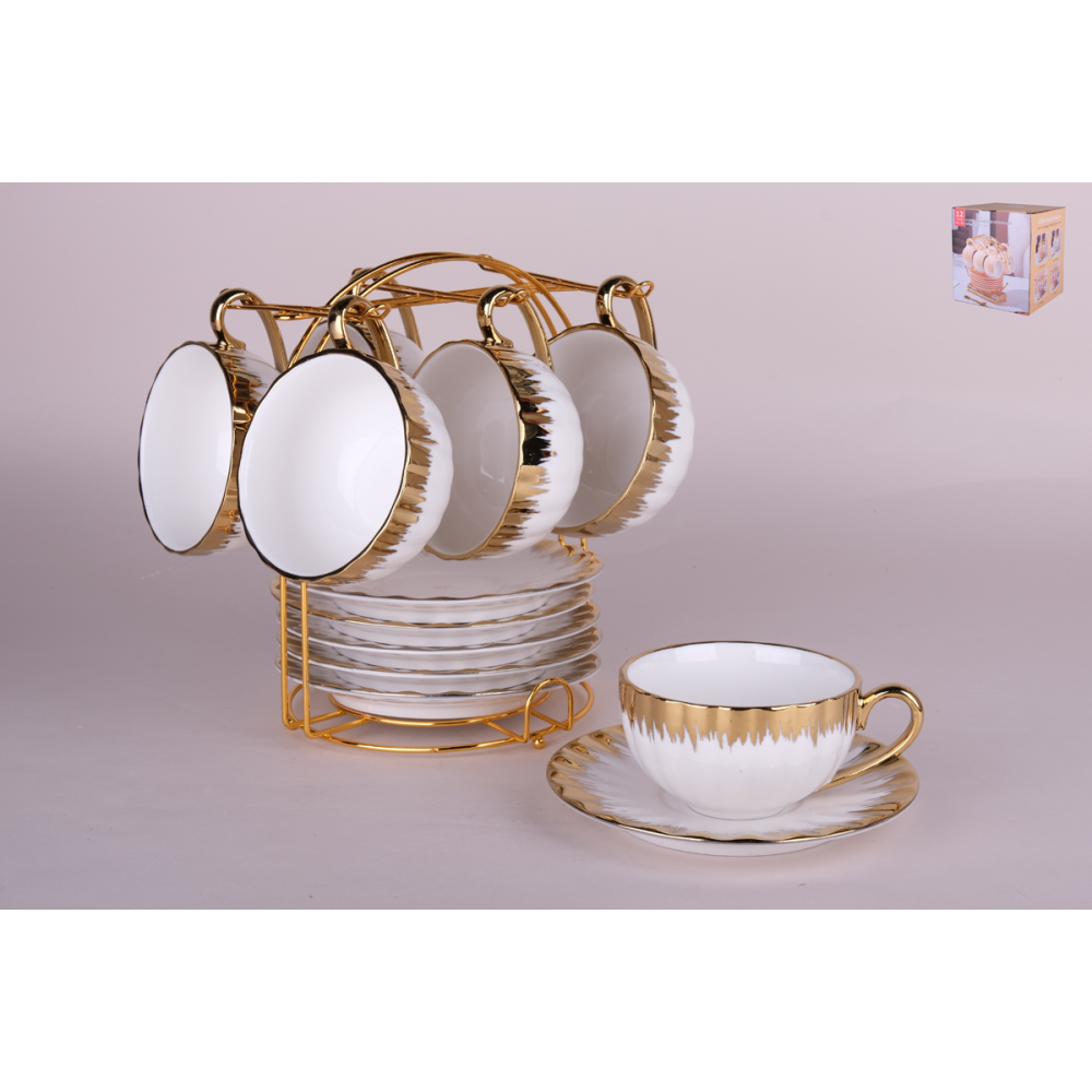 Набор чайный 12 пр. White gold КОРАЛЛ 220 мл. на мет.подст. 7477