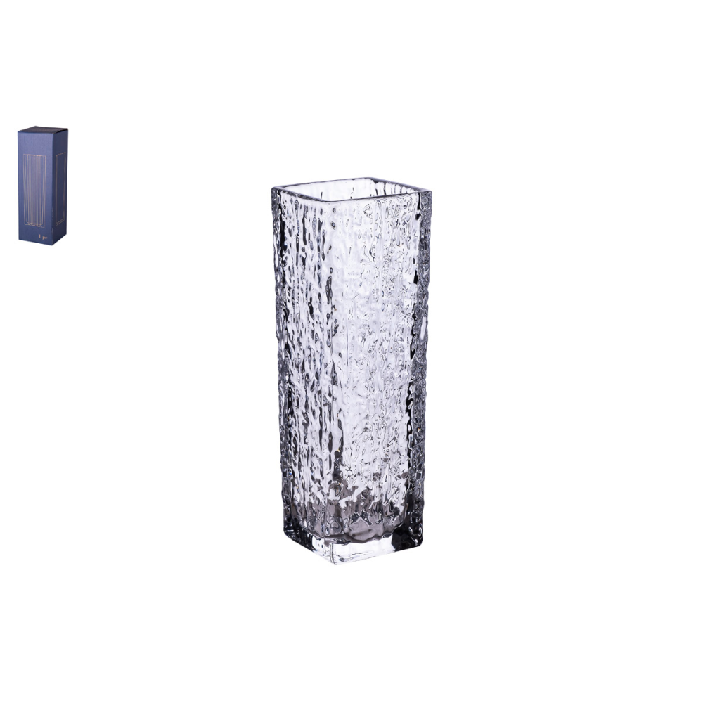 Ваза из толстого узорного стекла станет самостоятельным украшением любого интерьера. Изделие великолепно переливается на солнце и излучает приятный блеск.