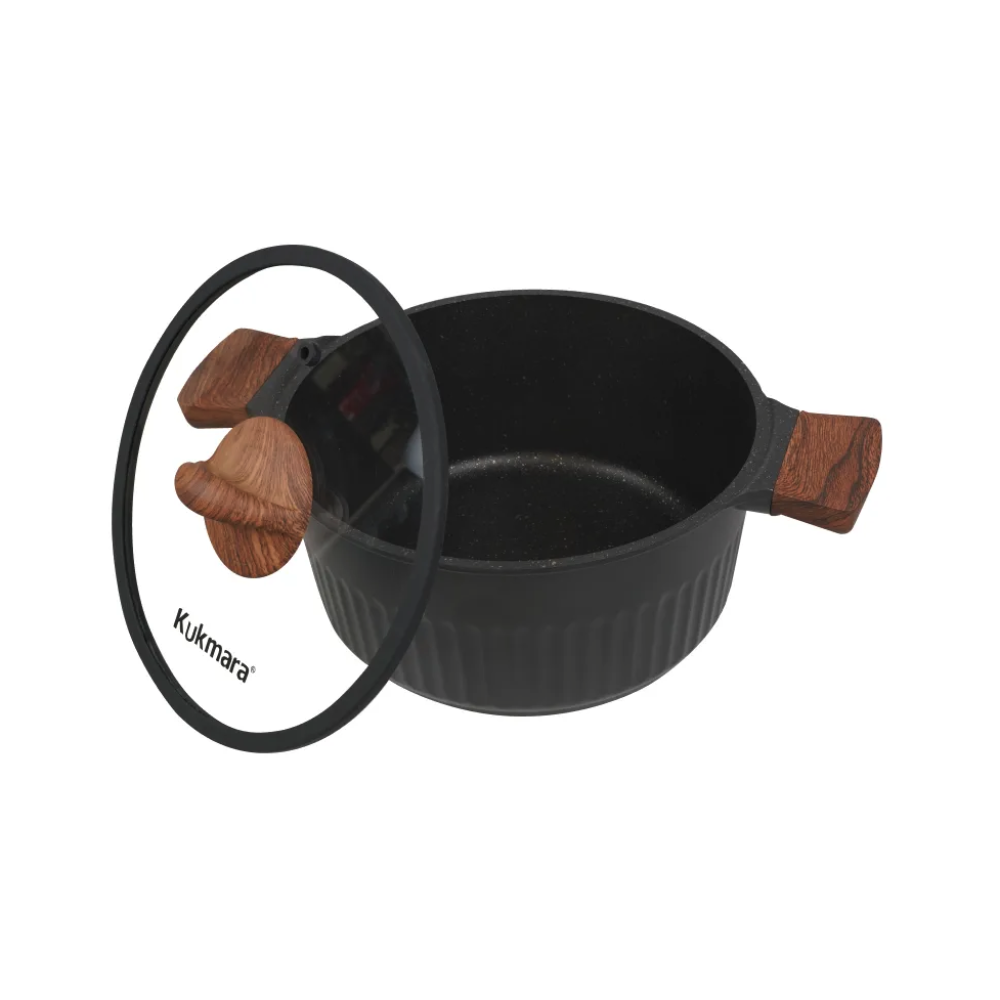 Кастрюля с артикулом кср42а — это универсальное решение для семейной кухни в глубоком чёрном оттенке «Ristretto». Стеклянная крышка обеспечивает контроль над готовкой, а фурнитура под дерево добавляет уюта и статусности.