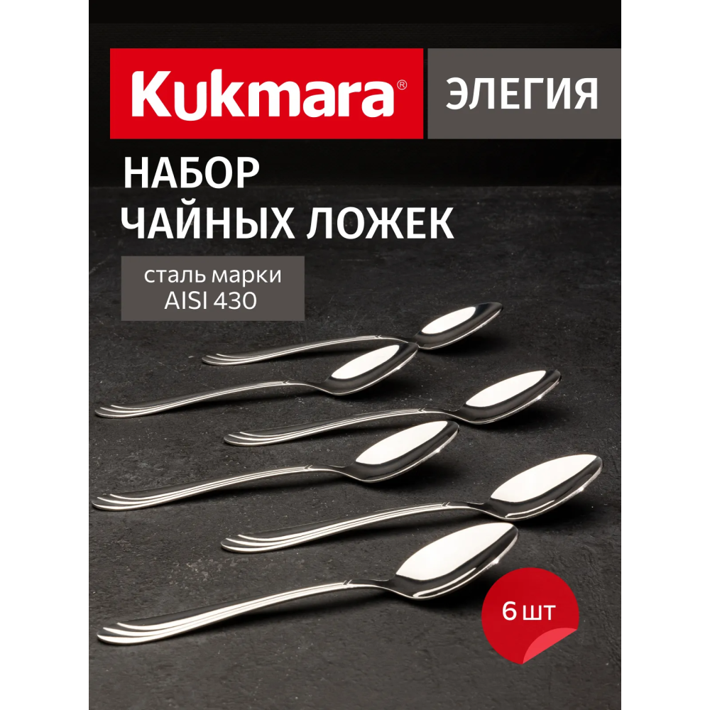 АО «Кукморский завод металлопосуды» представляет новый набор из линейки столовых приборов бренда Kukmara — Набор ложек чайных 6 предметов "Элегия" (М02), выполненный из высококачественной пищевой нержавеющей стали AISI430.
