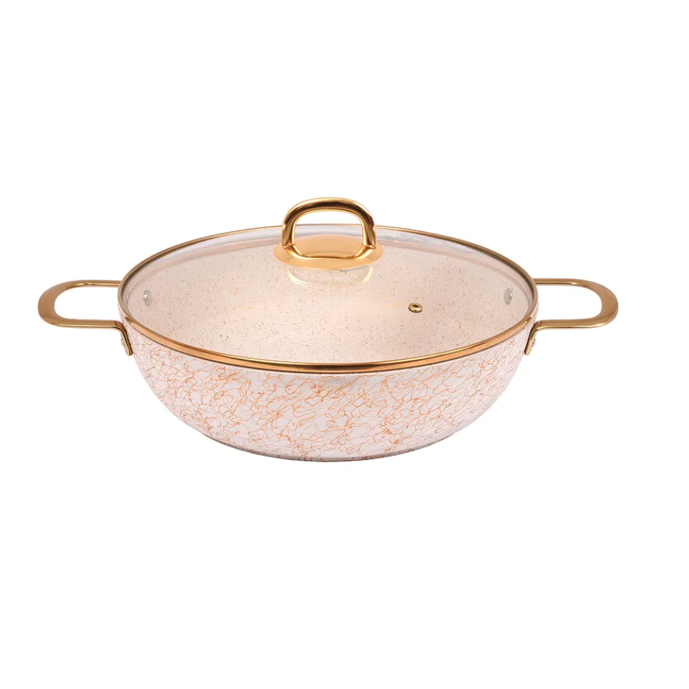 - Внутреннее противопригорающее покрытие, украшенное красивейшими вкраплениями золотого цвета, разработано по индивидуальному заказу ТМ Kukmara, не содержит PFOA, кадмий, свинец и полностью безопасно.