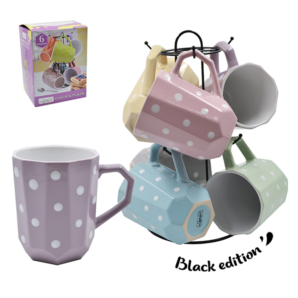 Набор кружек на подставке из 4 штук Lavenir «Нежный горошек» объёмом 330 мл (артикул 171490)