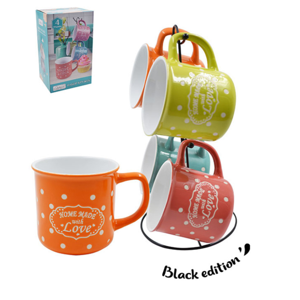 Набор кружек на подставке из 4 штук Lavenir «С любовью» объёмом 300 мл (артикул 21665)