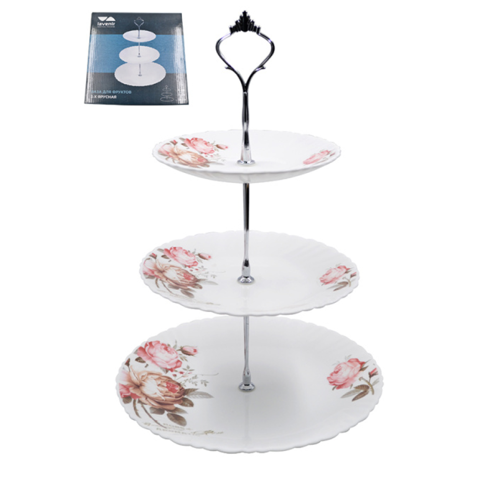 Ваза для фруктов 3-х ярусная Lavenir Чайные розы LXP3AT YF20032