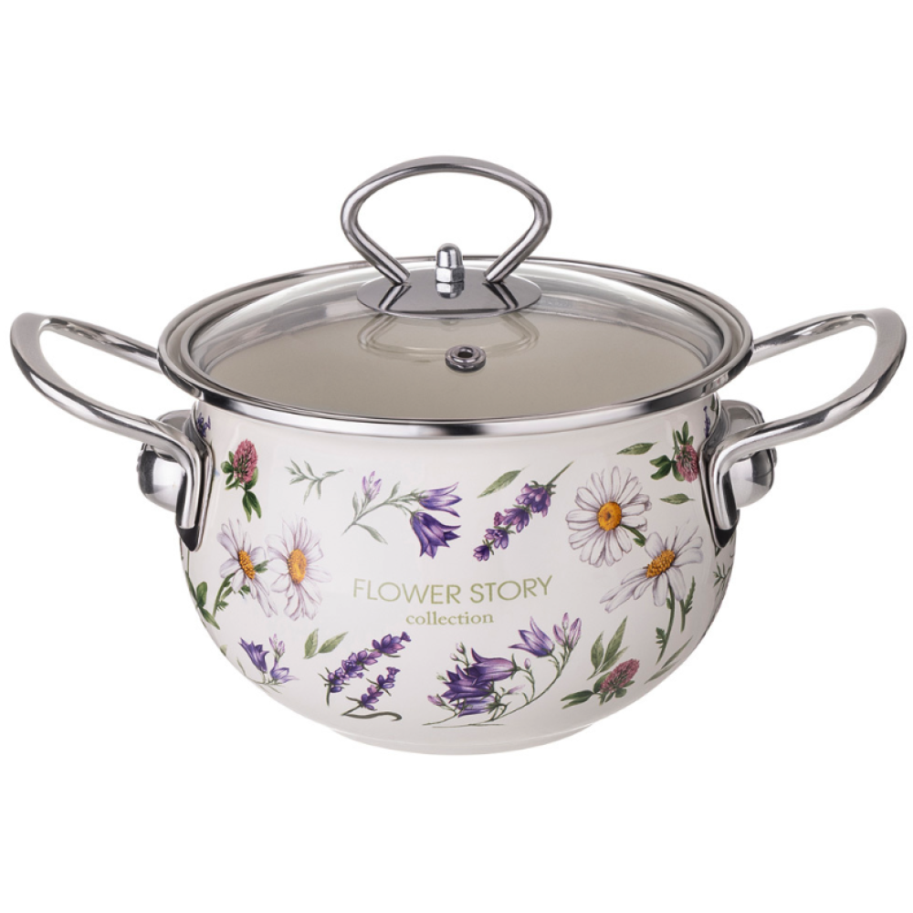 Кастрюля Agness Эмалированная Со Стеклянной Крышкой Серия Flower Story, 1,5 Л Диа. 16См 943-095
