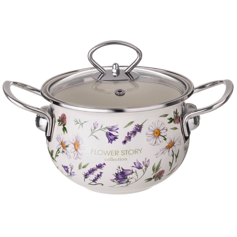 Кастрюля Agness Эмалированная Со Стеклянной Крышкой Серия Flower Story, 2,8 Л Диа. 20См 943-097