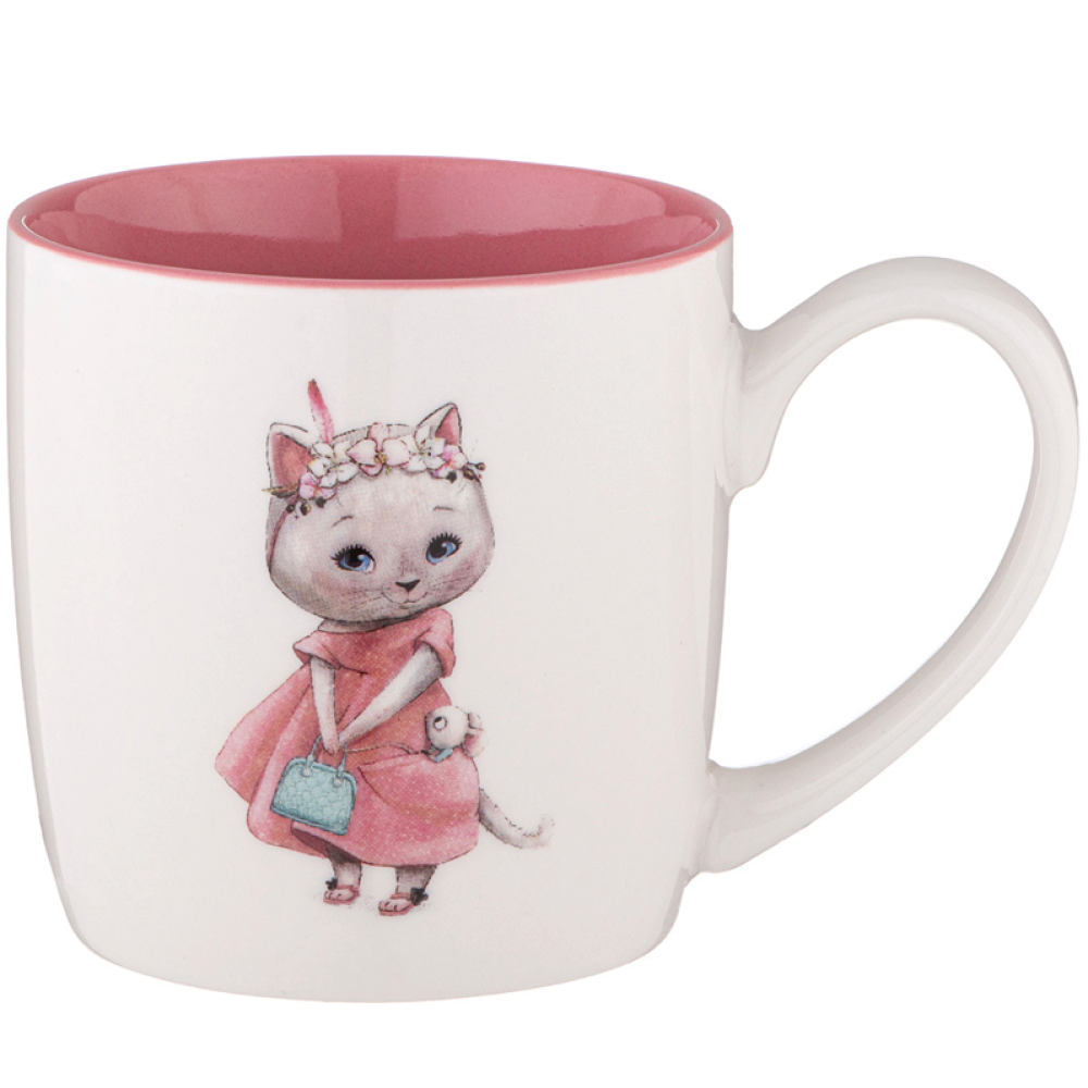 - Дизайн. Кружка отличается ярким дизайном с изображением кошечки. Такой декор вызывает улыбку у тех, кто использует посуду.