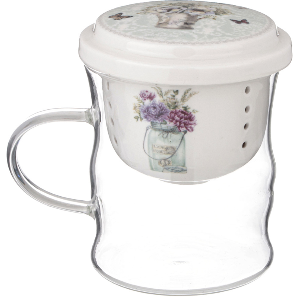 Кружка Стеклянная С Фарфоровым Ситом 420 Мл 87-321