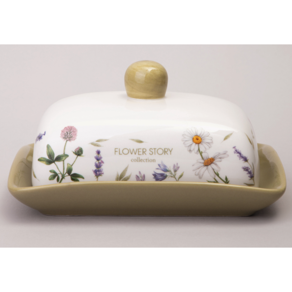 Маслёнка Agness «Flower Story» размером 17×12,5×8,5 см (артикул 358-2175) — это предмет сервировки из доломитовой керамики, предназначенный для хранения сливочного масла. Она входит в коллекцию «Flower Story», которая выполнена в светлых тонах с нежным цветочным дизайном.