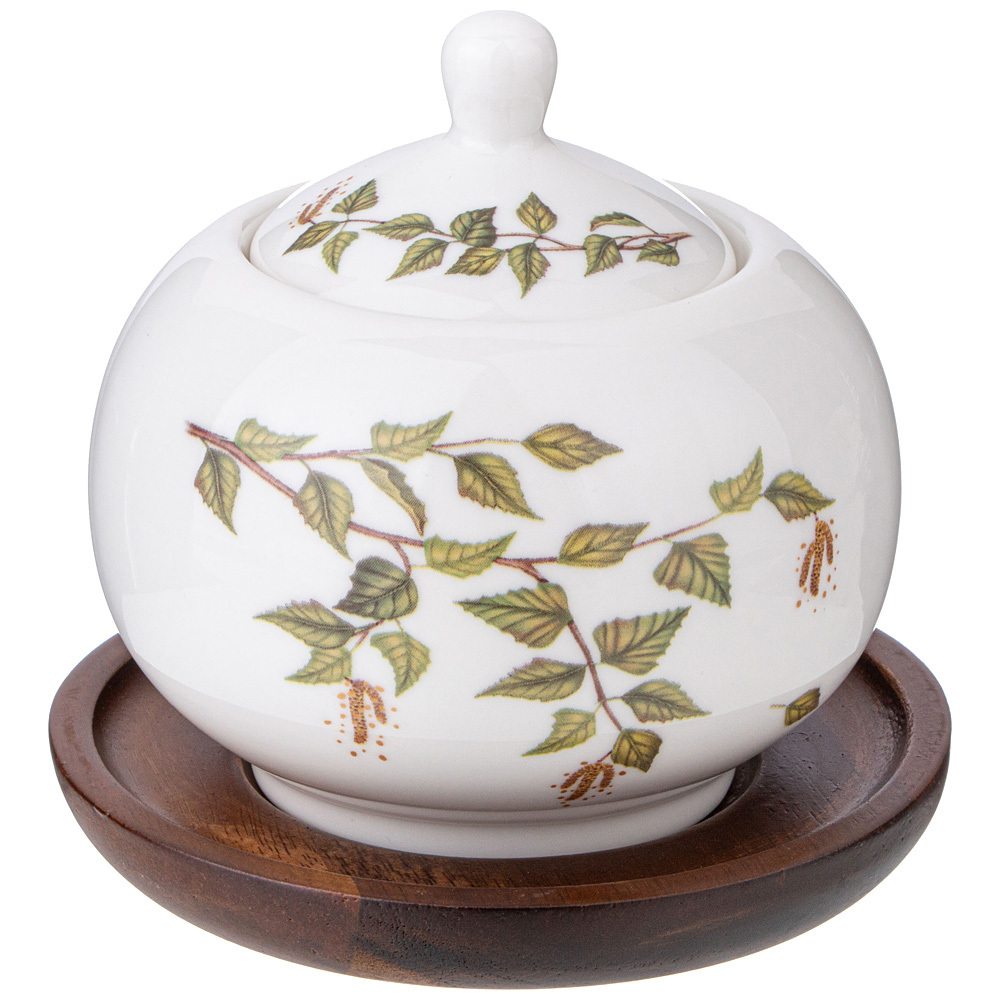 Береза - это природный символ нашей страны. Сразу видишь бескрайние просторы и светлые леса. Вкусный березовый сок, золотистые сережки, шелест тонких ветвей и листьев, гордый и несгибаемый белый ствол – Березка хороша в любое время года. ТМ LEFARD в эксклюзивной коллекции «Березки» постаралась остановить мгновение и подарить вам эту красоту. Чайные пары и кружки выполнены из костяного фарфора, остальные предметы коллекции - из тонкостенного упрочненного фарфора. В коллекции набор столовой посуды, тарелки, чайные пары и наборы из них. Новинка коллекции комбинированные предметы чайник, сахарница, кружка, чайные пары с подставками и блюдцами из акации. Красочная упаковка. Прекрасный подарок. Изделия из фарфора можно смело использовать в микроволновой печи, разрешено мыть в посудомоечной машине, рекомендуется использовать только мягкие моющие средства.