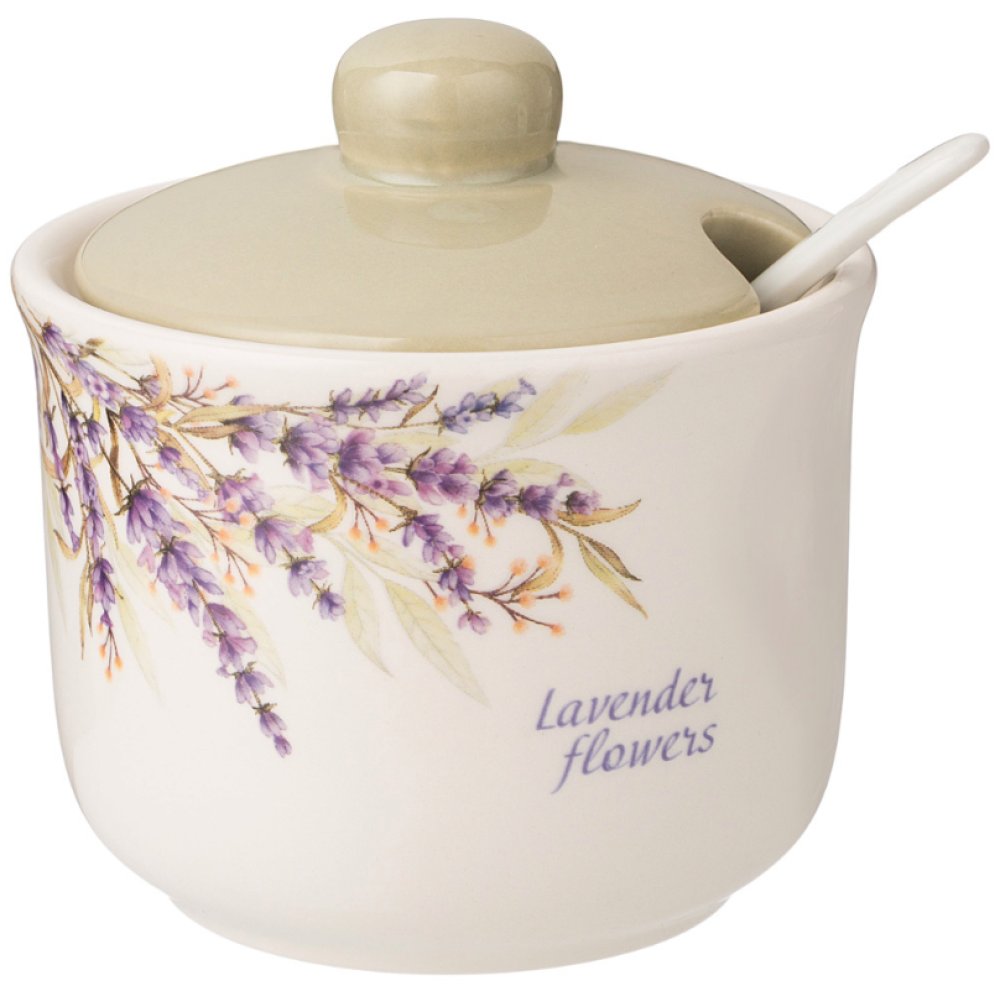 Сахарница с ложкой Agness «Душа Прованса» (артикул 358-2057) — это предмет сервировки из доломитовой керамики, входящий в одноимённую серию бренда Agness. Она предназначена для хранения сахара, рафинада, варенья, мёда, конфет и других жидких или сыпучих продуктов.