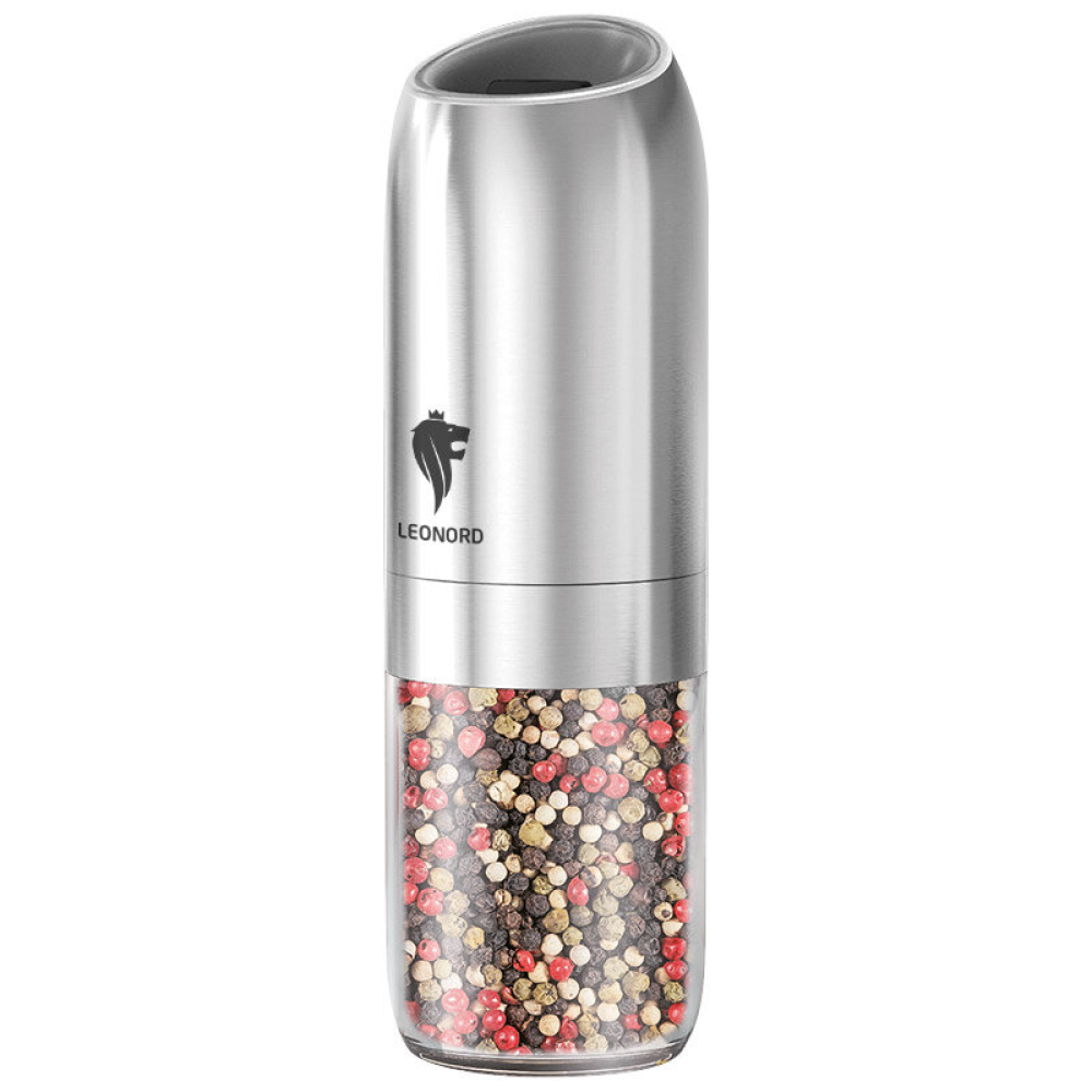 Гравитационный принцип работы Мощность 6 Вт Объём 176 мл Корпус из нержавеющей стали Керамический нож Прозрачный контейнер для перца Светодиодная подсветка Регулировка степени помола Работа от батареек 4хААА (1,5 В,не входят в комплект)