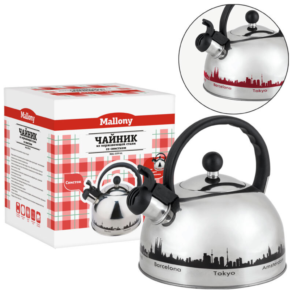 Технические характеристики Чайник из нерж. стали MAL-CITY-01 с рисунком, меняющим цвет (2,8 литра, со свистком, капсульное дно) 985609-SK