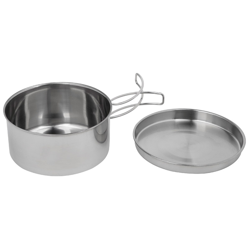 Материал: нержавеющая сталь 304 В набор входит: - Кастрюля маленькая (Размер: 12.5см*5.5см, ручка: 10.7см, 0.4мм (толщина), объём: 615мл, вес: 130г); - Блюдо (13.4см*1.2см, 0.44мм (толщина), объём: 165мл, вес тарелки: 70г)