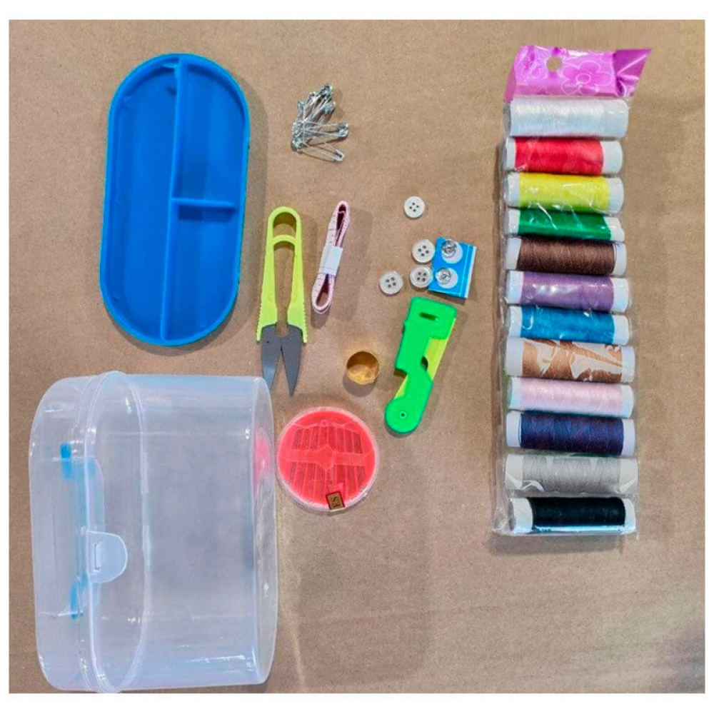 Набор для шитья - полезная вещь в дороге и хозяйстве. В наборе: - катушки с нитками микс цветов - 12 шт - иголки - 24 шт - булавки - 10 шт - пуговицы пластиковые - 4 шт - кнопки металлические - 2 шт - нитевдеватель - наперсток - сантиметровая лента - мини-ножницы - пластиковый бокс Материалы: полипропилен, нержавеющая сталь, хлопок, бумага, полиуретан, пластмасса упаковка: пакет, стикер