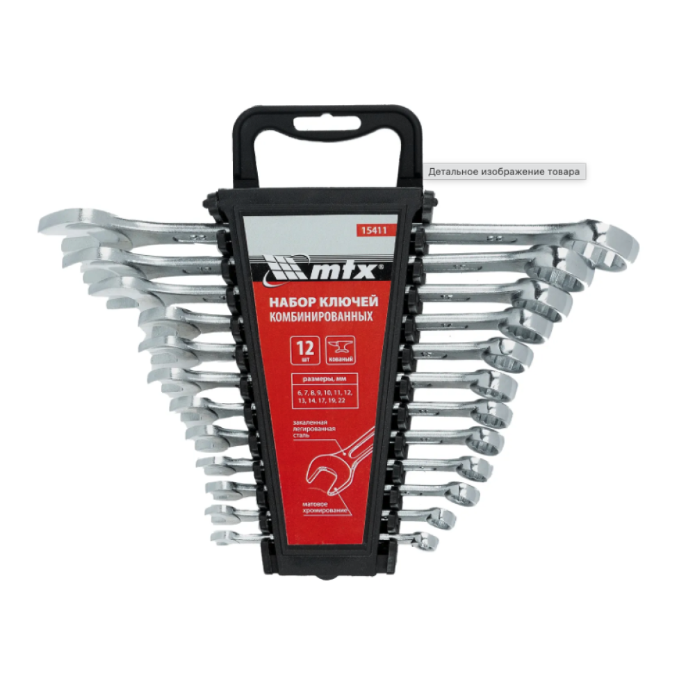 Набор комбинированных ключей MTX 15411 включает в себя 12 инструментов размером 6-22 мм из кованой стали с покрытием «матовый хром». Используется для монтажа и демонтажа шестигранного резьбового крепежа соответствующего диаметра. Наличие рожкового и кольцевого зева делает каждый ключ универсальным в применении. Накидные головки с 12-гранным профилем надежно удерживают крепеж, уменьшая риск его деформации. Набор будет полезен в сервисном центре, авторемонтной мастерской, для монтажа оборудования, а также пригодится дома или на даче.