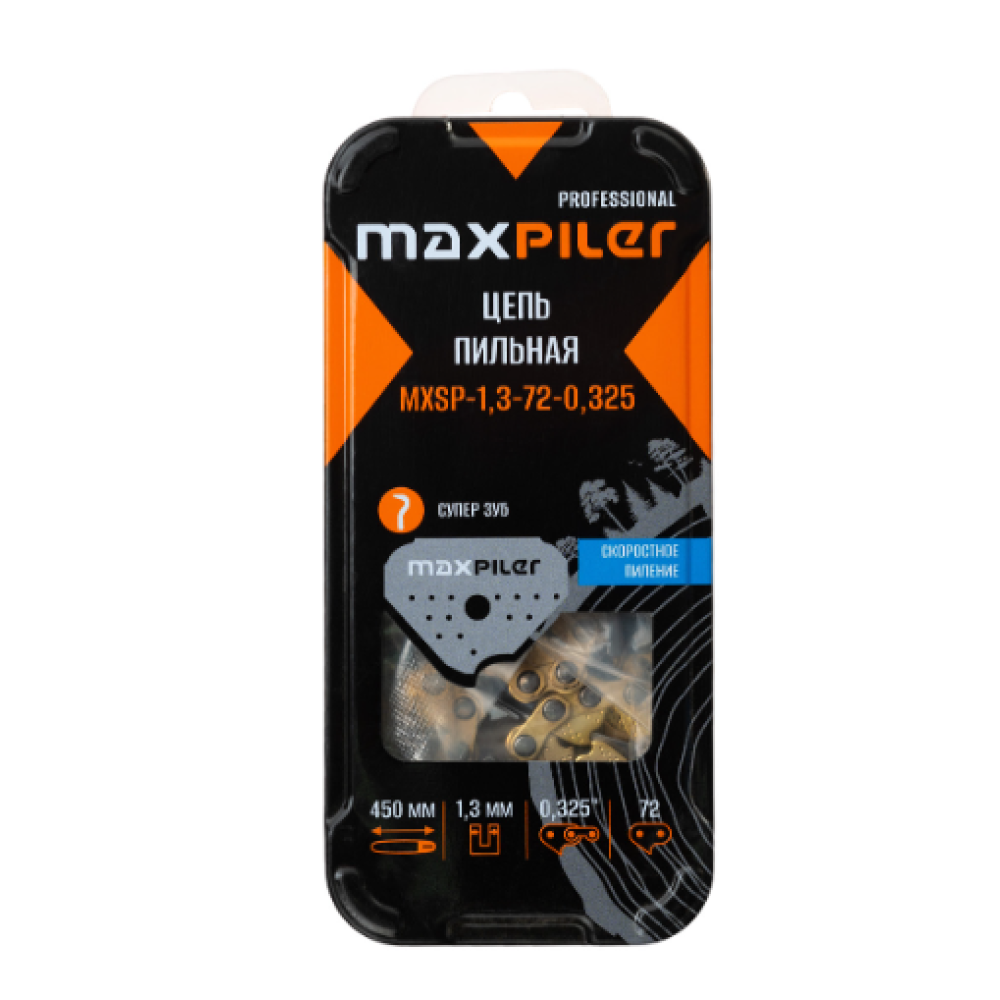 Удобная и легкая в применении пильная цепь MXSP-1,3-72-0,325. Подходит для различных распиловочных работ. Выполнена из высококачественных материалов, что повышает ее износостойкость. Цепь MAXPILER помогает сделать ровный и чистый рез, повышает скорость и производительность работы. Способствует снижению отдачи. Обратите внимание, для увеличения срока службы и лучшего качества работ, мы советуем регулярно смазывать цепь.
