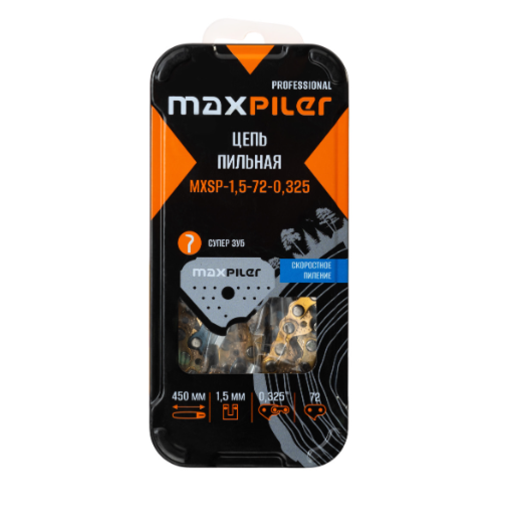 Удобная и легкая в применении пильная цепь MXS-1,5-72-0,325. Подходит для различных распиловочных работ. Выполнена из высококачественных материалов, что повышает ее износостойкость. Цепь MAXPILER помогает сделать ровный и чистый рез, повышает скорость и производительность работы. Способствует снижению отдачи. Обратите внимание, для увеличения срока службы и лучшего качества работ, мы советуем регулярно смазывать цепь.