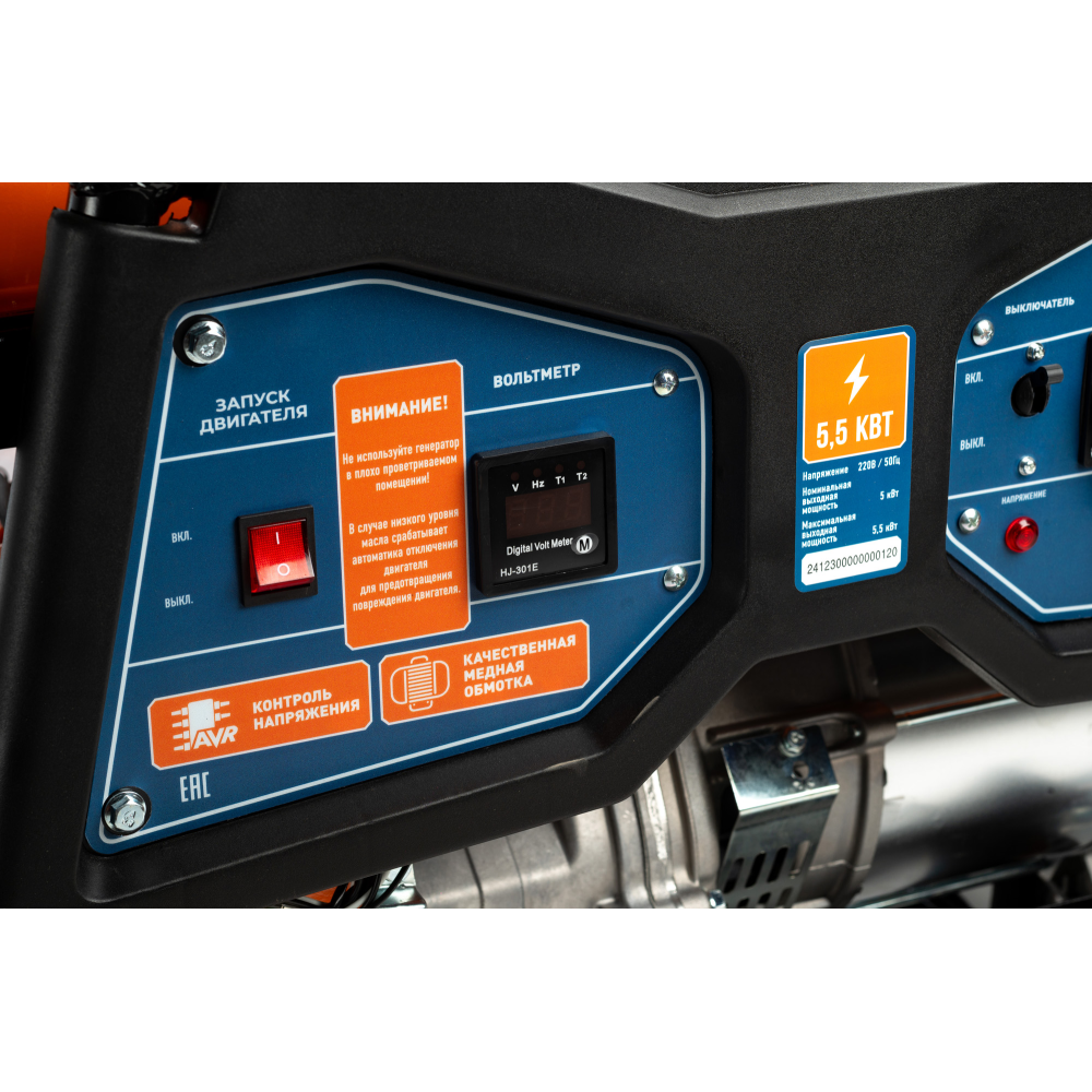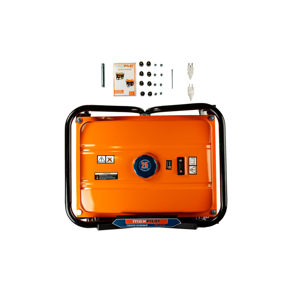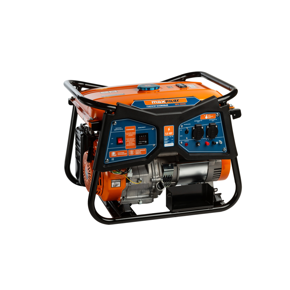 Генератор бензиновый MPG-5500C используется для электропитания приборов с общей потребляемой мощностью до 5,5 кВт в местах с отсутствием стационарной электросети. Предусмотрена индикация уровня масла и топлива для своевременной дозаправки устройства. При коротком замыкании, подача тока отключается автоматически. Металлическая рама защищает внутренние элементы от ударов