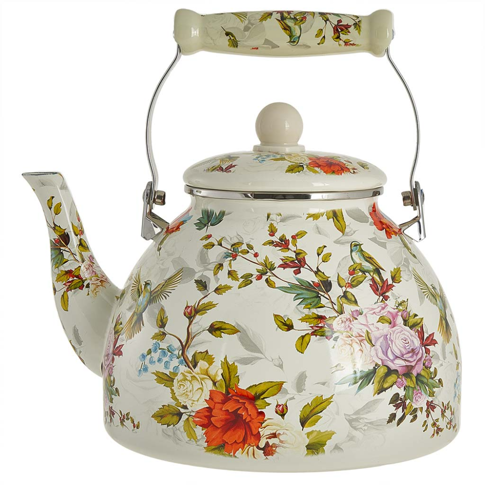 Чайник 4 л эмалированный с керамической ручкой EM-1339 Цветы