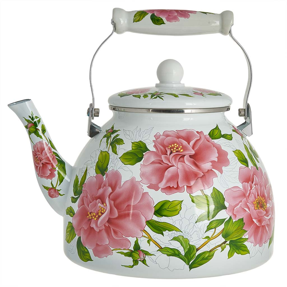 Чайник 5 л эмалированный с керамической ручкой EM-1338 Пионы