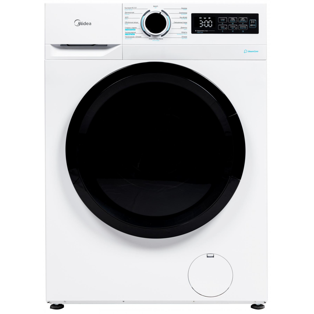 стиральная машина Midea MF01712BS40/W с фронтальной загрузкой, классом стирки A и максимальной загрузкой белья 7 кг.