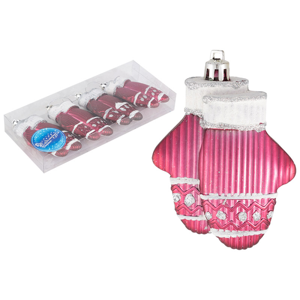 Набор елочных украшений Варежки (4шт) цвет: малиновый 007450-SK