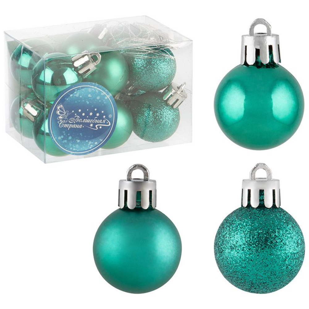 Набор шаров размер: 3 см кол-во: 12 шт цвет: как на фото (мат., глянец, блеск) материал: пластмасса, полиэстер упаковка: ПВХ-коробка