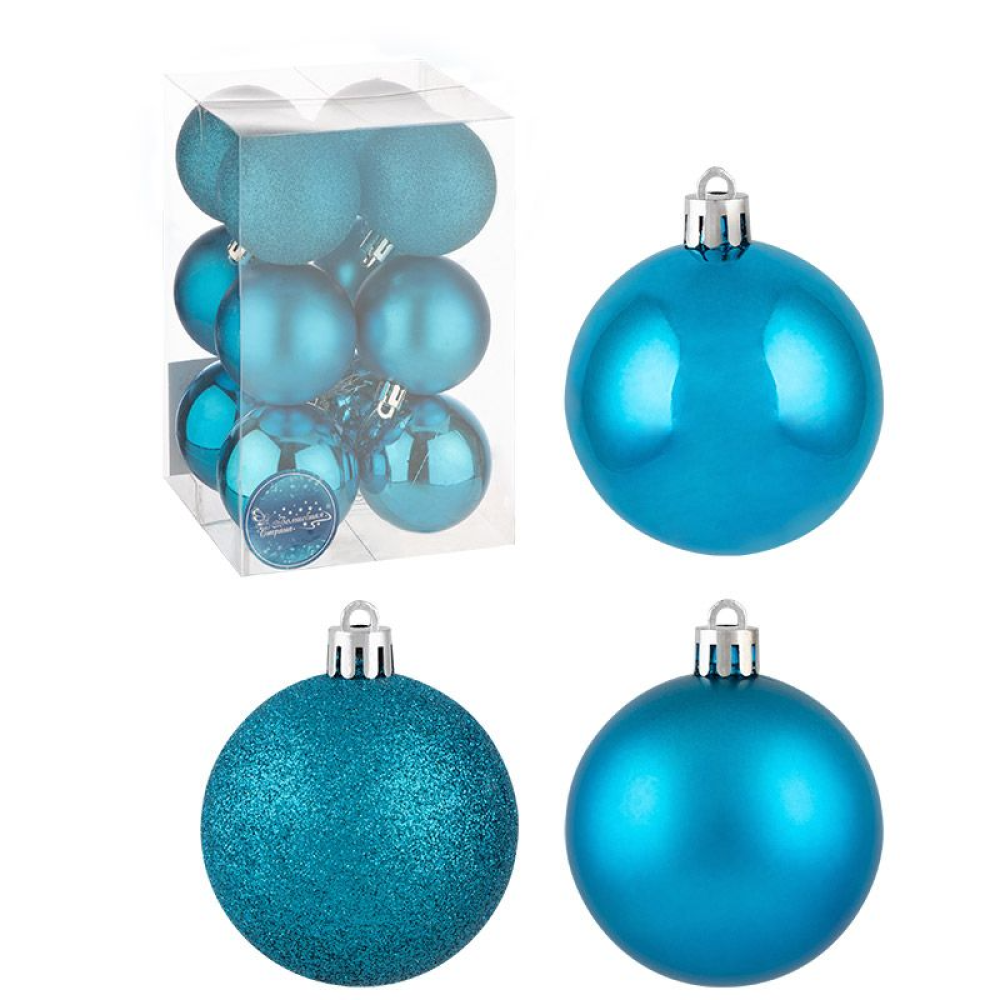 Набор шаров размер: 6 см кол-во: 12 шт цвет: как на фото (мат, глянец, блеск) материал: пластмасса, полиэстер упаковка: ПВХ-коробка