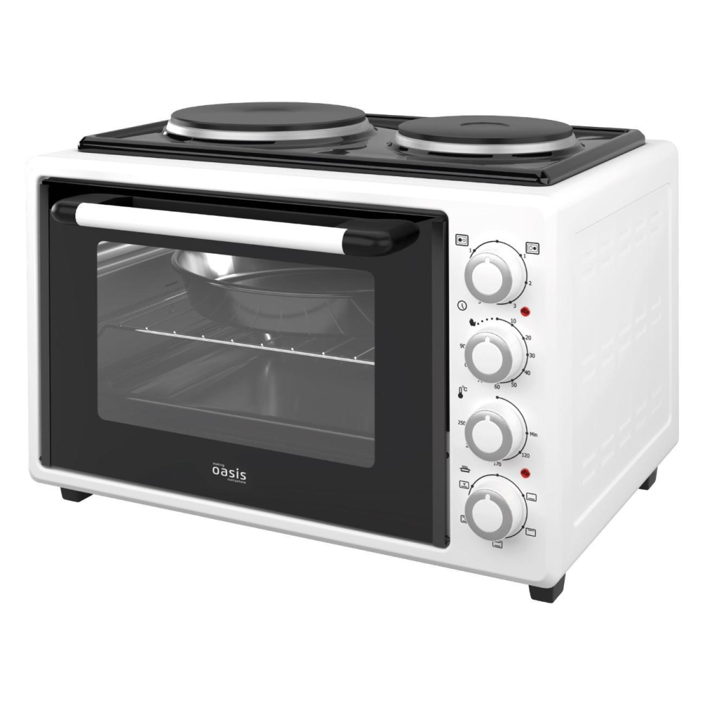 Электрическая мини-печь making Oasis everywhere M-BL40W1 — компактное кухонное устройство, которое заменяет духовой шкаф и может использоваться для приготовления пиццы, жаркого, выпечки хлеба и других блюд.