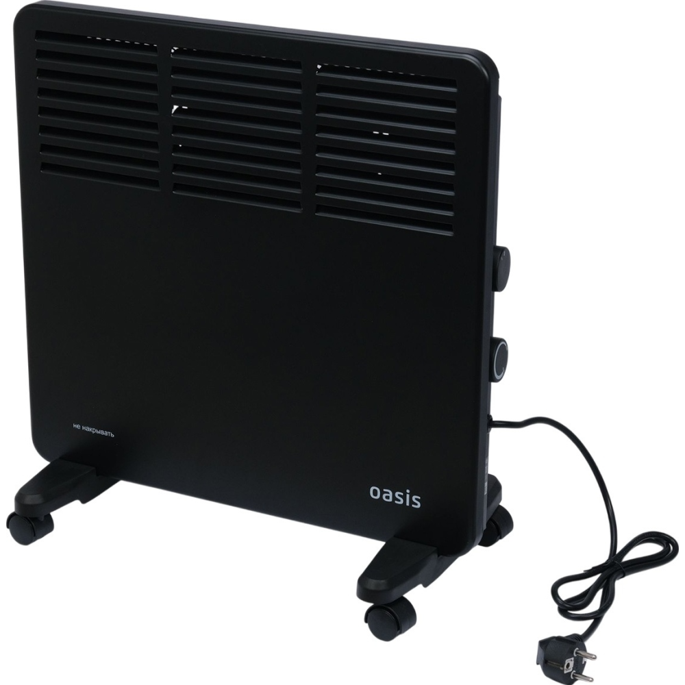 Конвектор Oasis VK-10B — электрический прибор для обогрева помещений, работает по принципу конвекции: холодный воздух поступает в нижнюю часть устройства, нагревается от теплового элемента и поднимается вверх, создавая непрерывный цикл движения воздуха.