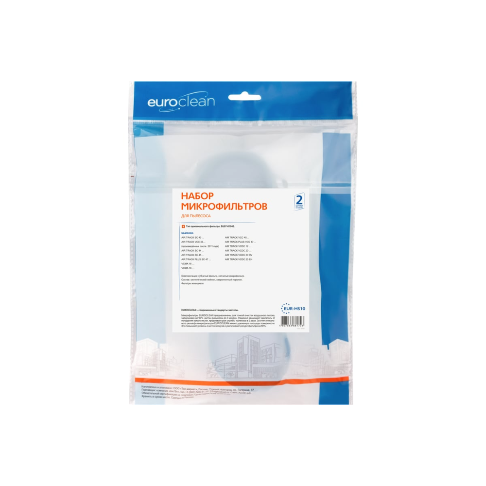 Набор оригинальных микрофильтров EURO Clean EUR-HS10 подойдет для моделей пылесосов SAMSUNG: Air Track SC 44, SC45, VCDC 20, VCDC 12, Air Track Plus SC47 и Air Track SC43, произведенных до 2011 года. Применяется для тонкой очистки воздуха. За счет особого фильтровального материала, микрофильтры способны удерживать мелкие частицы пыли и аллергены. Идеально подходят для домашней уборки.