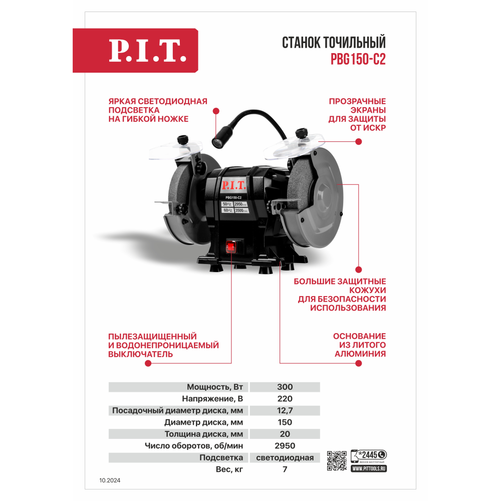 Станок точильный P.I.T. PBG150-C2 - станет отличным помощником в мастерской или гараже. Может применяться для заточки слесарного и режущего инструмента, хозяйственного инвентаря, а также шлифовки металлических заготовок.