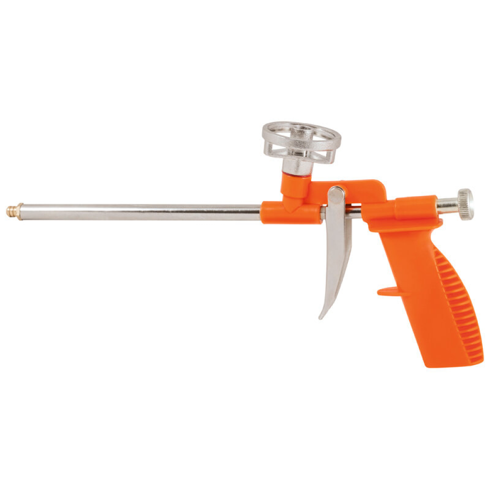 Пистолет для монтажной пены Материал: металл с никелевым покрытием, полипропилен, медь. размер пистолета 29,5*15*4,6 см Пистолет для монтажной пены предназначен для заполнения полостей, трещин, отверстий в различных материалах. Используется при проведении монтажных, строительных, ремонтных работ. Носик подающей трубки и винтик выполнены из меди. корпус - пластик Модель предназначена для работы со стандартными баллонами, имеющими крепление под пистолет.