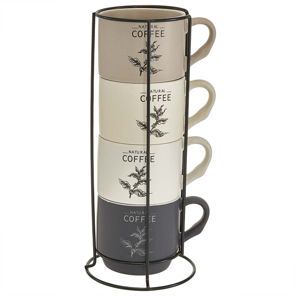 Набор кружек 4 предмета (350 мл) Natural coffee Ф11-054L/4 на металлической подставке